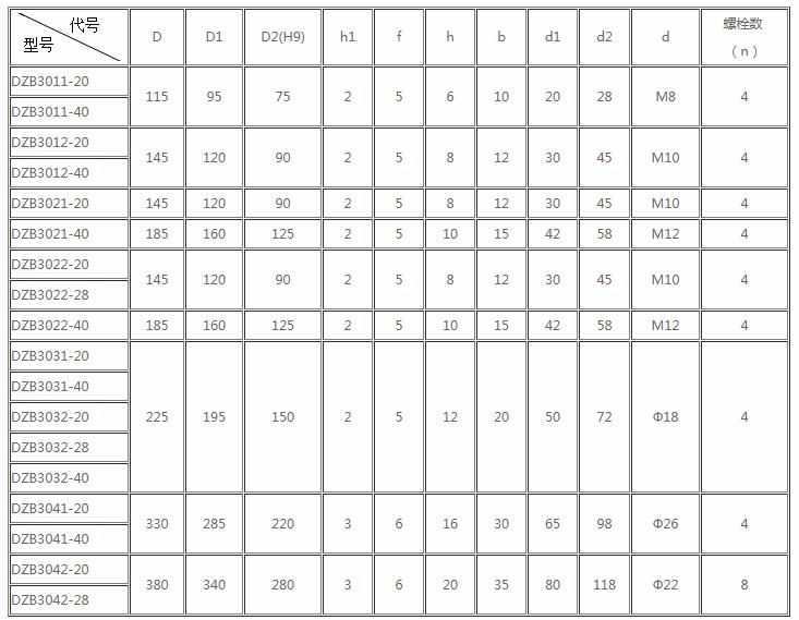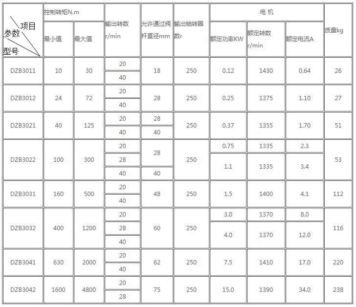 四、DZB系列閥門(mén)電動(dòng)裝置主要技術(shù)性能參數(shù)表