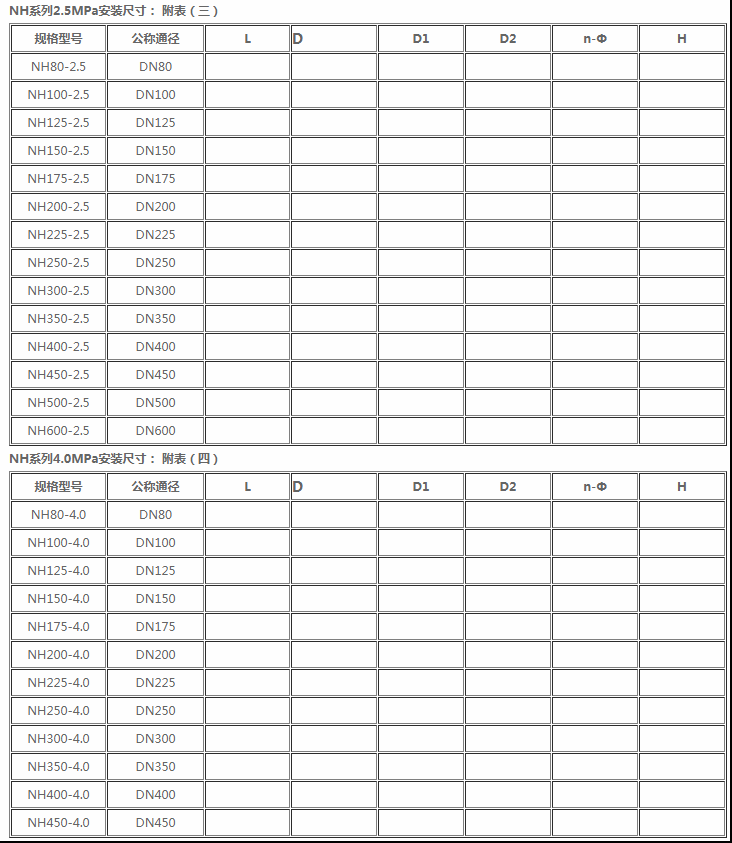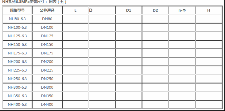 NH系列1.6MPa安裝尺寸:
